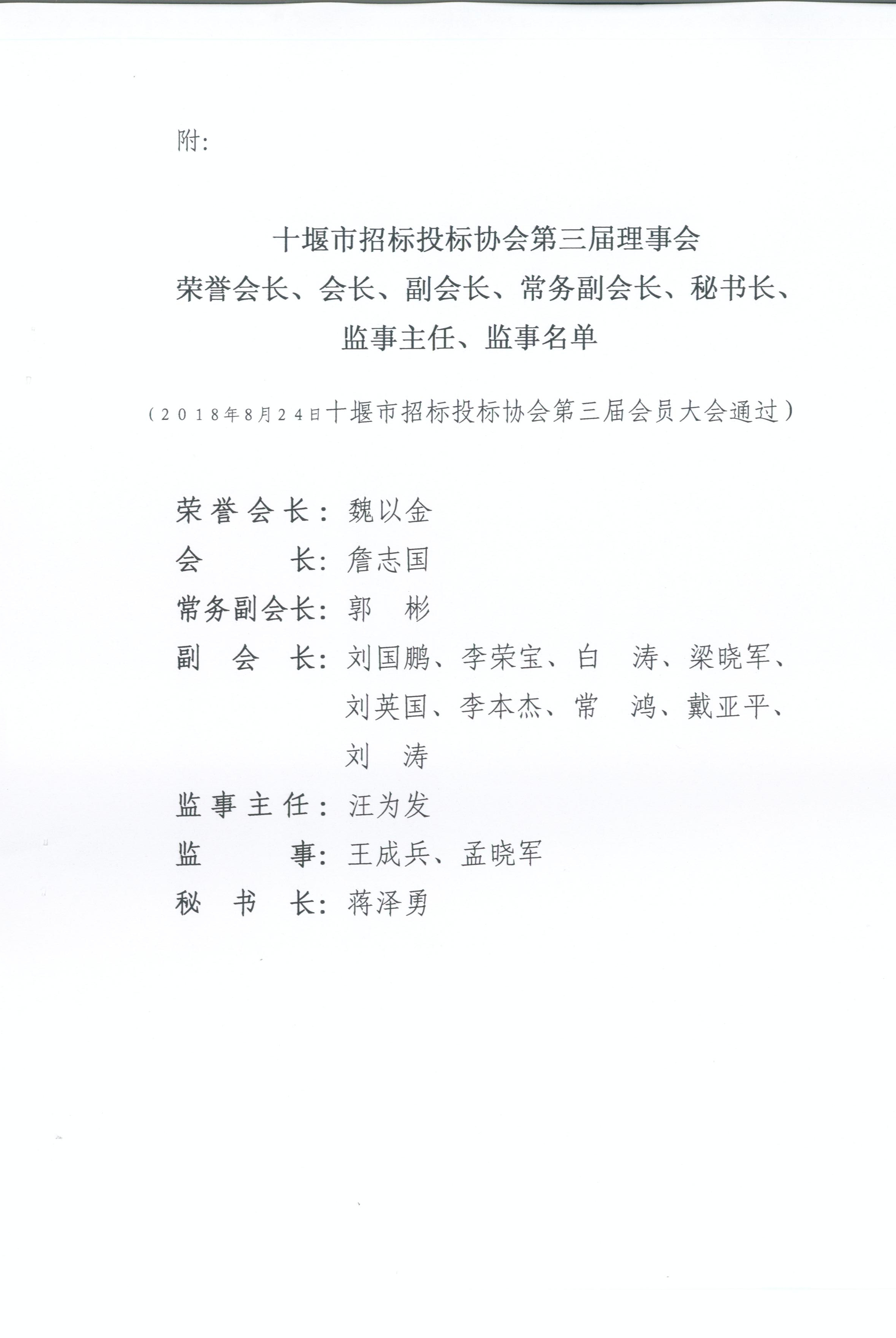关于印发十堰市招标投标协会第三届理事会负责人的通知